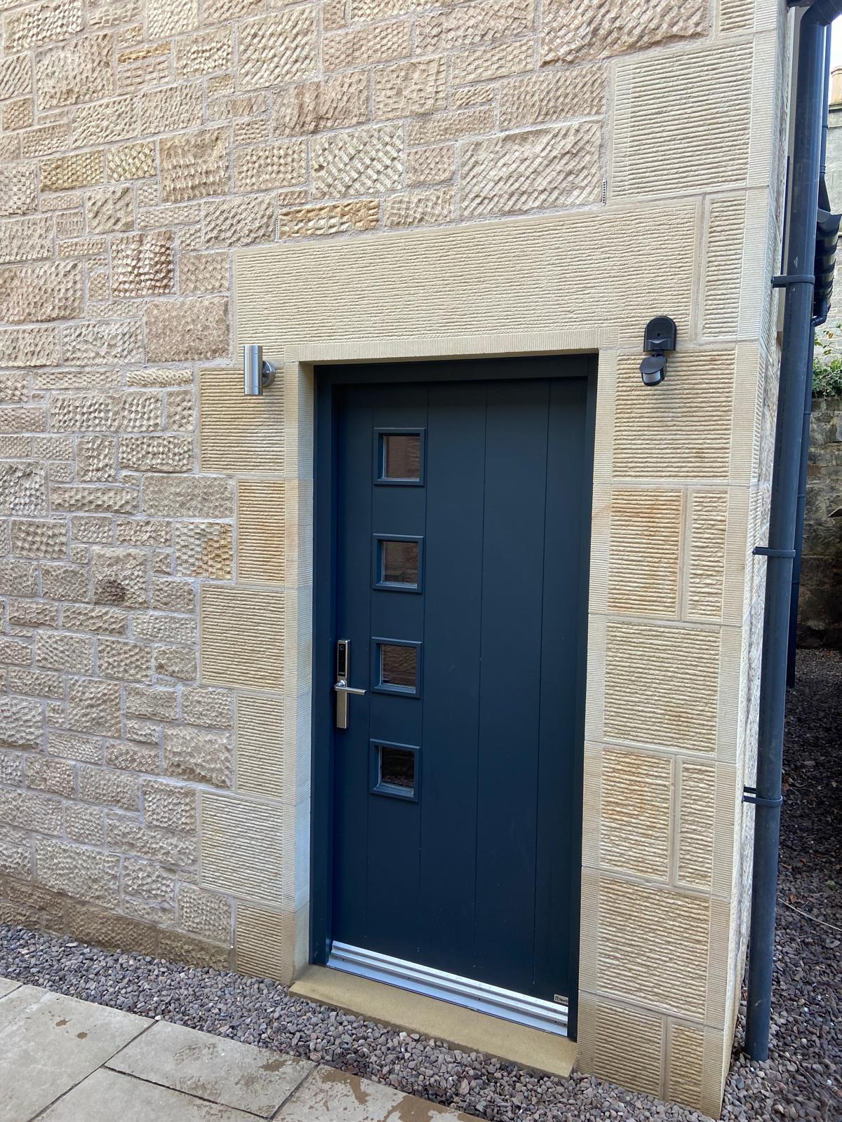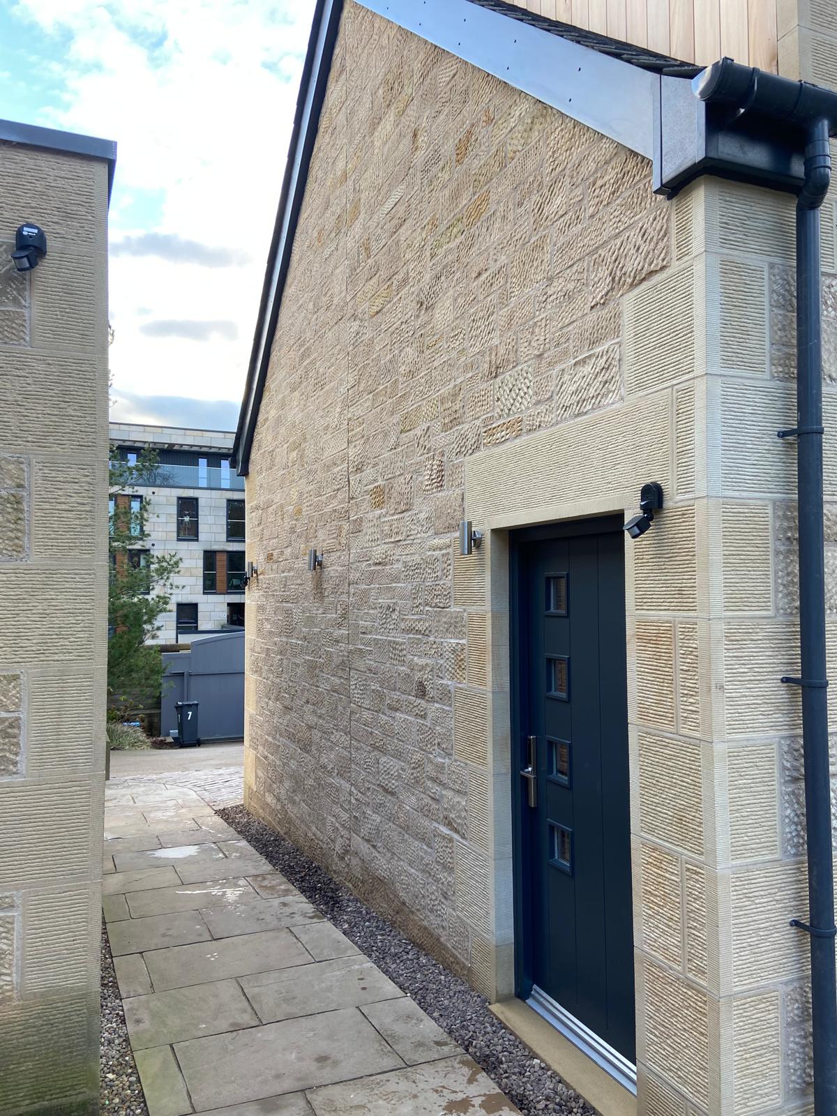 Darney sandstone was used for the window and door surrounds which were dressed and tooled on-site by our team to match the existing property.