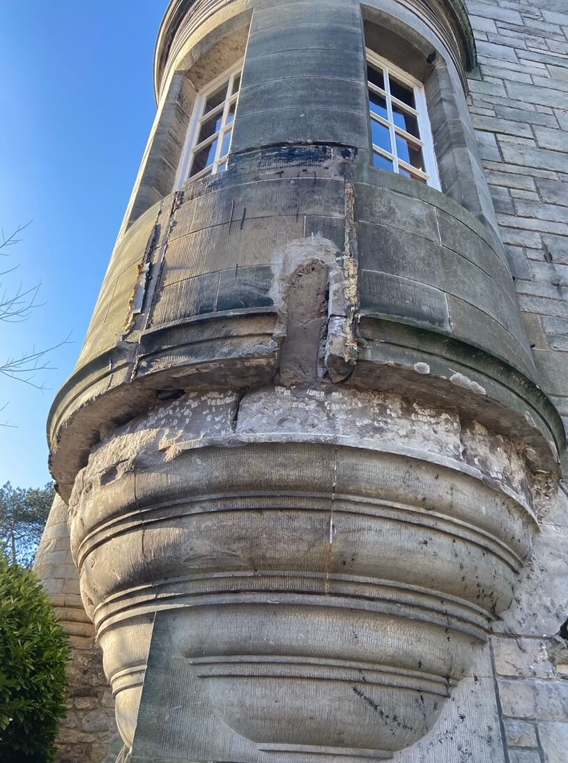 The turret was in a state of disrepair and the only option was to replace the masonry units.